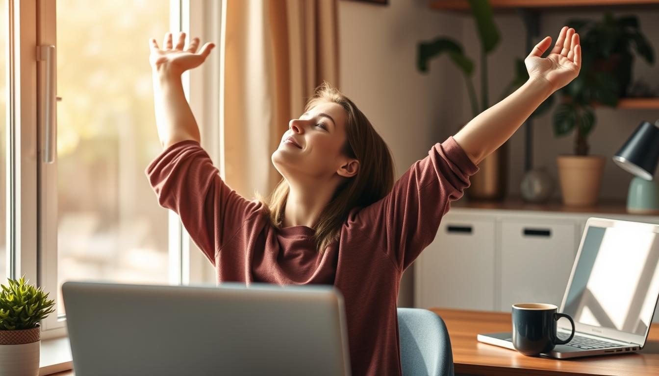 Stress reduction starts with small shifts. Mindful micro-breaks as short as 60 seconds can reset your mindset. Try breathing exercises during pauses: inhale deeply for 4 counts, exhale for 6. This simple practice activates your body’s relaxation response, easing tension instantly. Meditation at work doesn’t require silence or special spaces—focus on your breath while sipping water or walking to the printer.